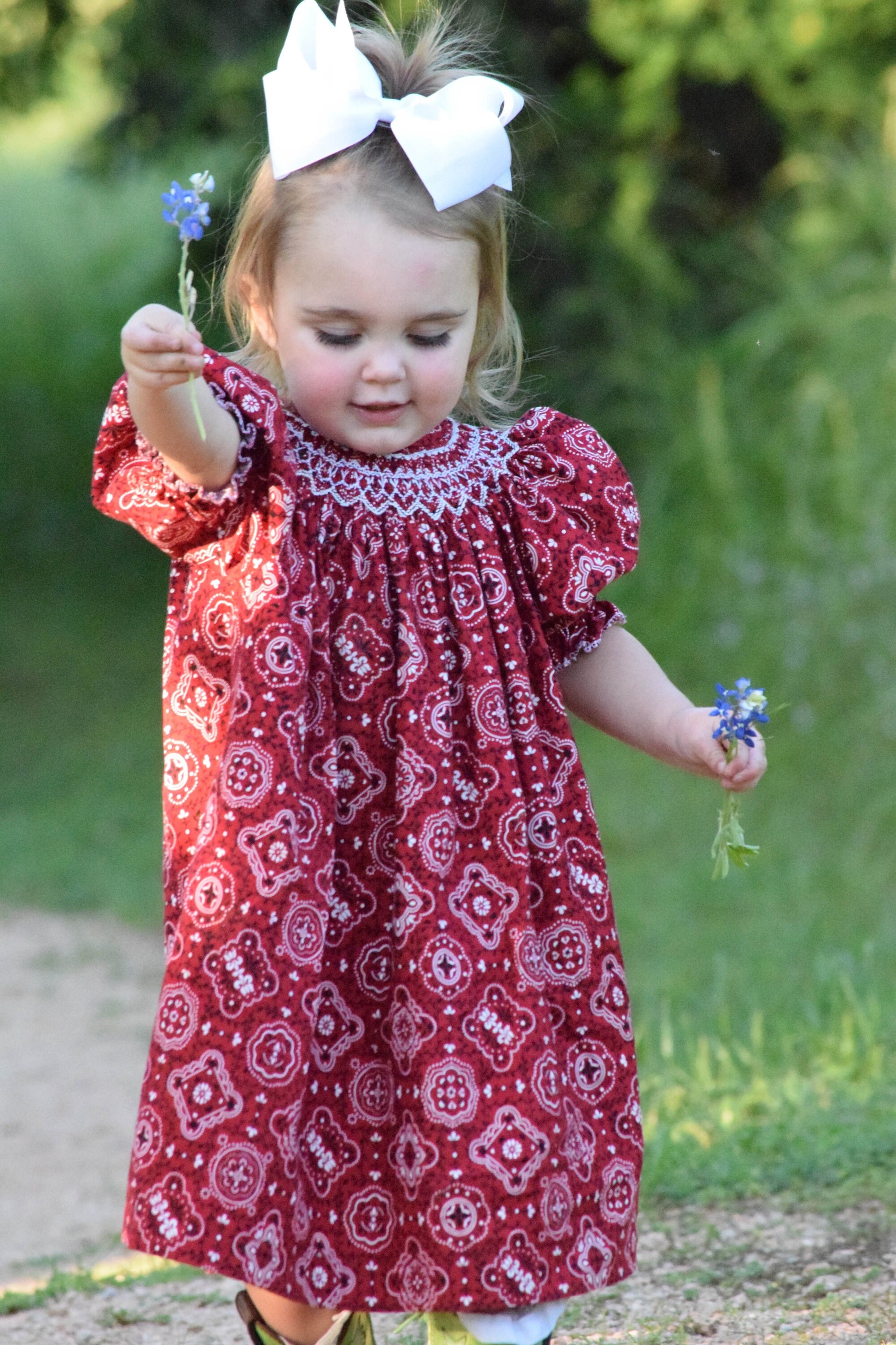 Country Dress - Bandana Dress - Girls Western Dress - Smocked Dress - Bishop Dress, Heirloom Dress,