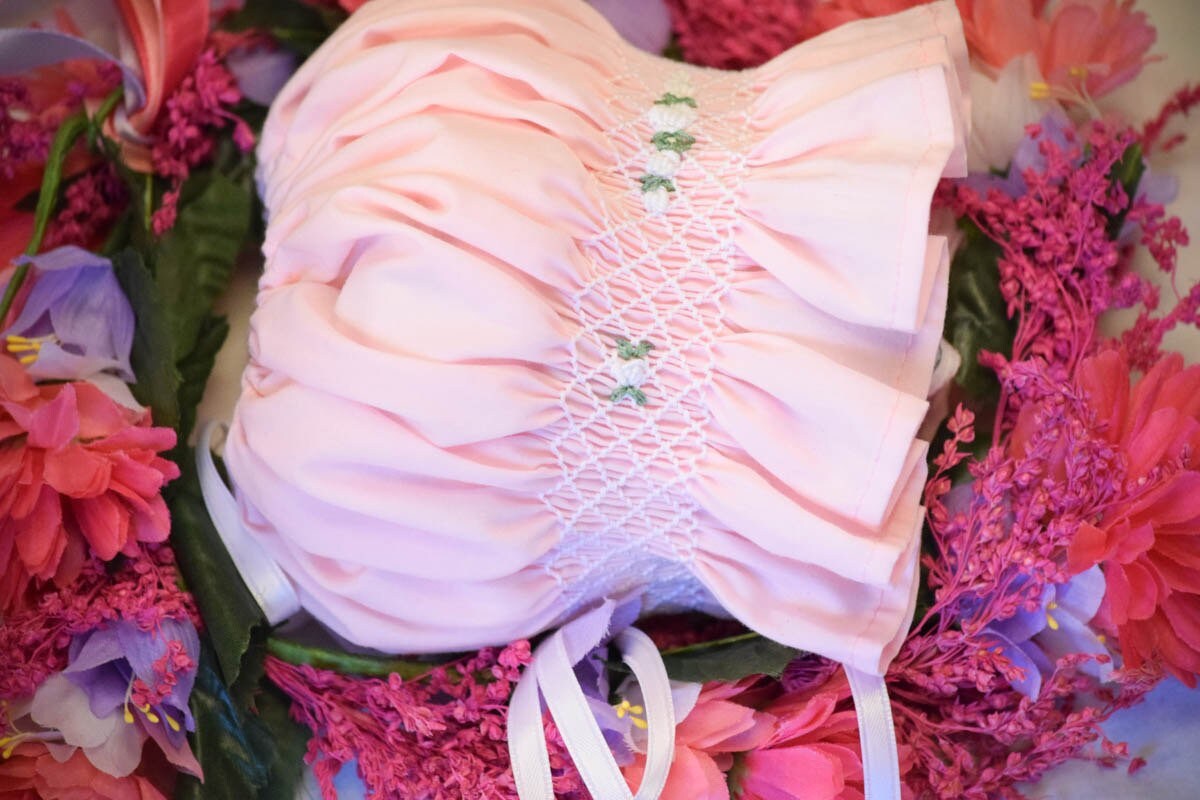 Easter Bonnet - Christening Bonnet, Vintage, Heirloom, Baby Gift, Shower Gift, Easter Bonnet, Hand Smocked Bonnet, One Year Old Pictures