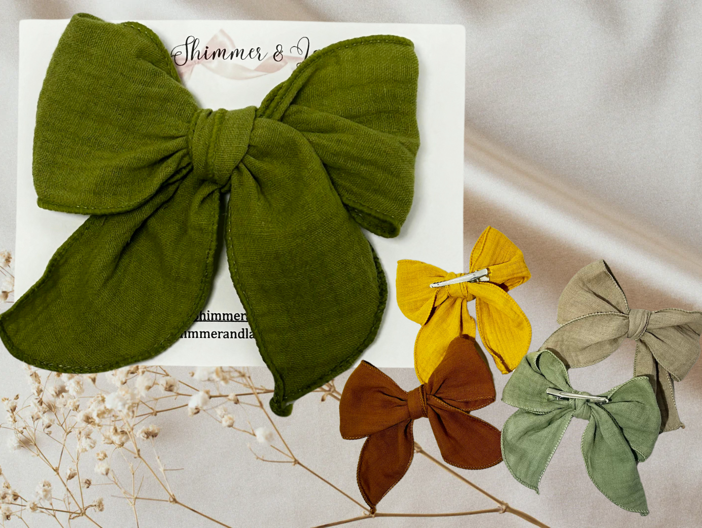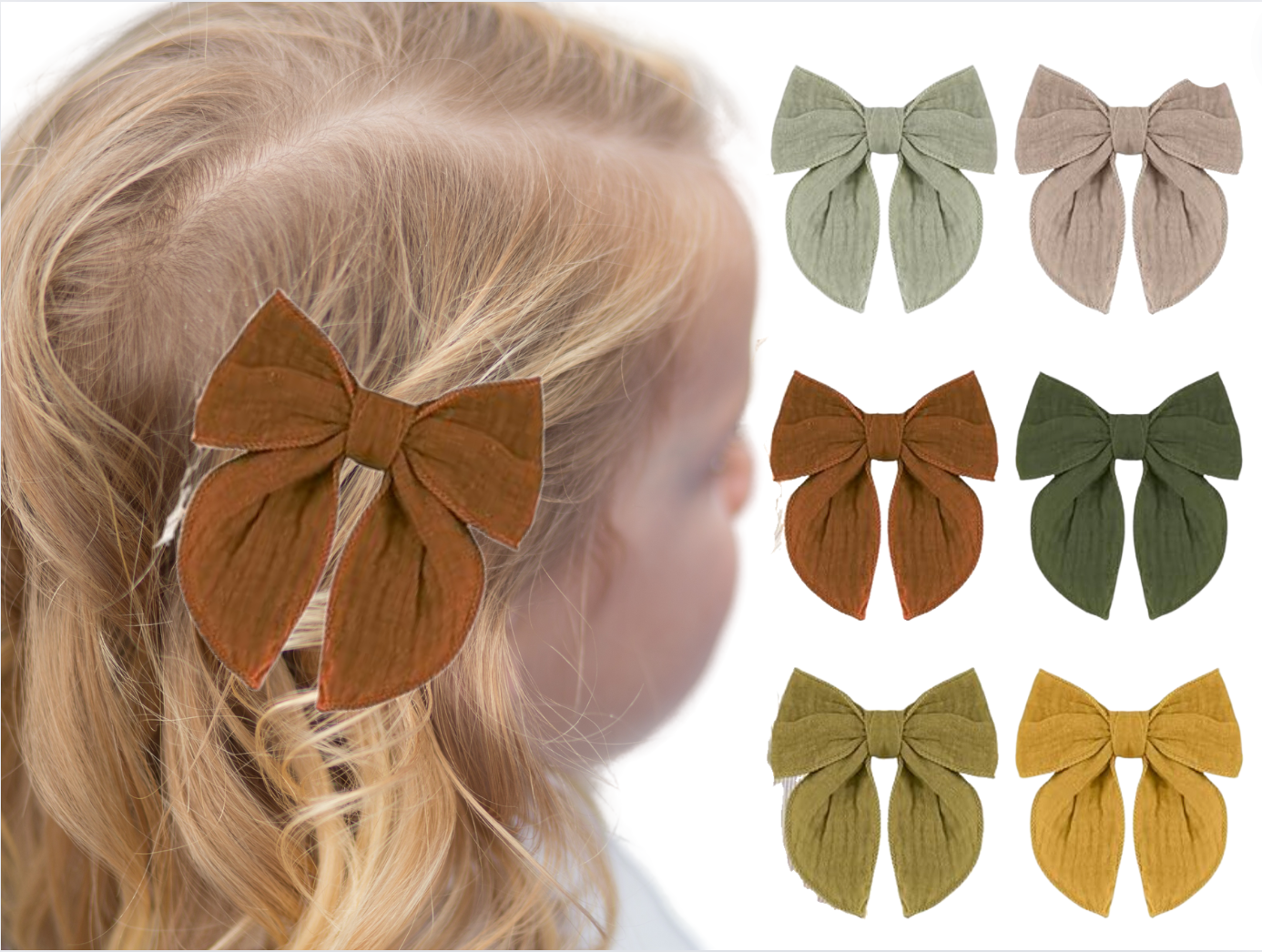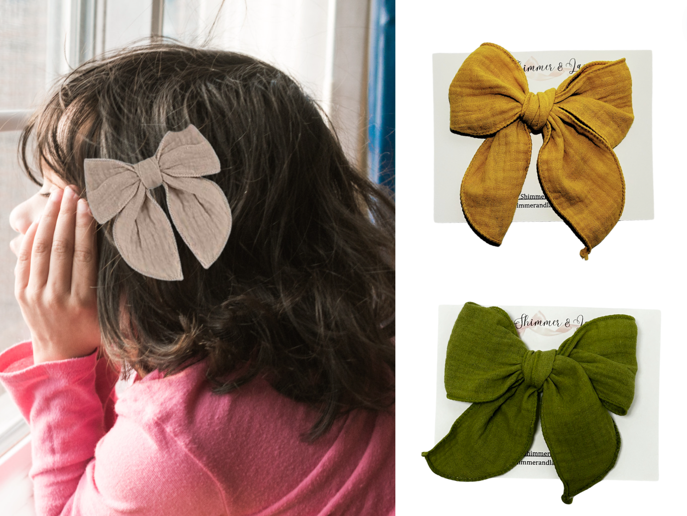 Our Fable Hair Bow features a convenient alligator clip, making it quick and easy to adorn your little one's hair without any fuss. Mornings will breeze by as you simply clip on the perfect bow to enhance her hairstyle in seconds. Each bow is hand made with high quality linen fabric. These bowS measure 5.5".