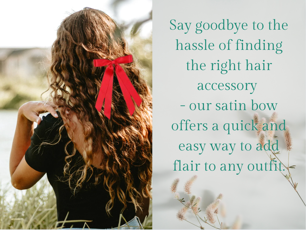 Say goodbye to the hassle of finding the right hair accessory - our satin bow offers a quick and easy way to add flair to any outfit. With its classic design and high-quality satin material, it effortlessly transitions from day to night, making it suitable for all occasions.