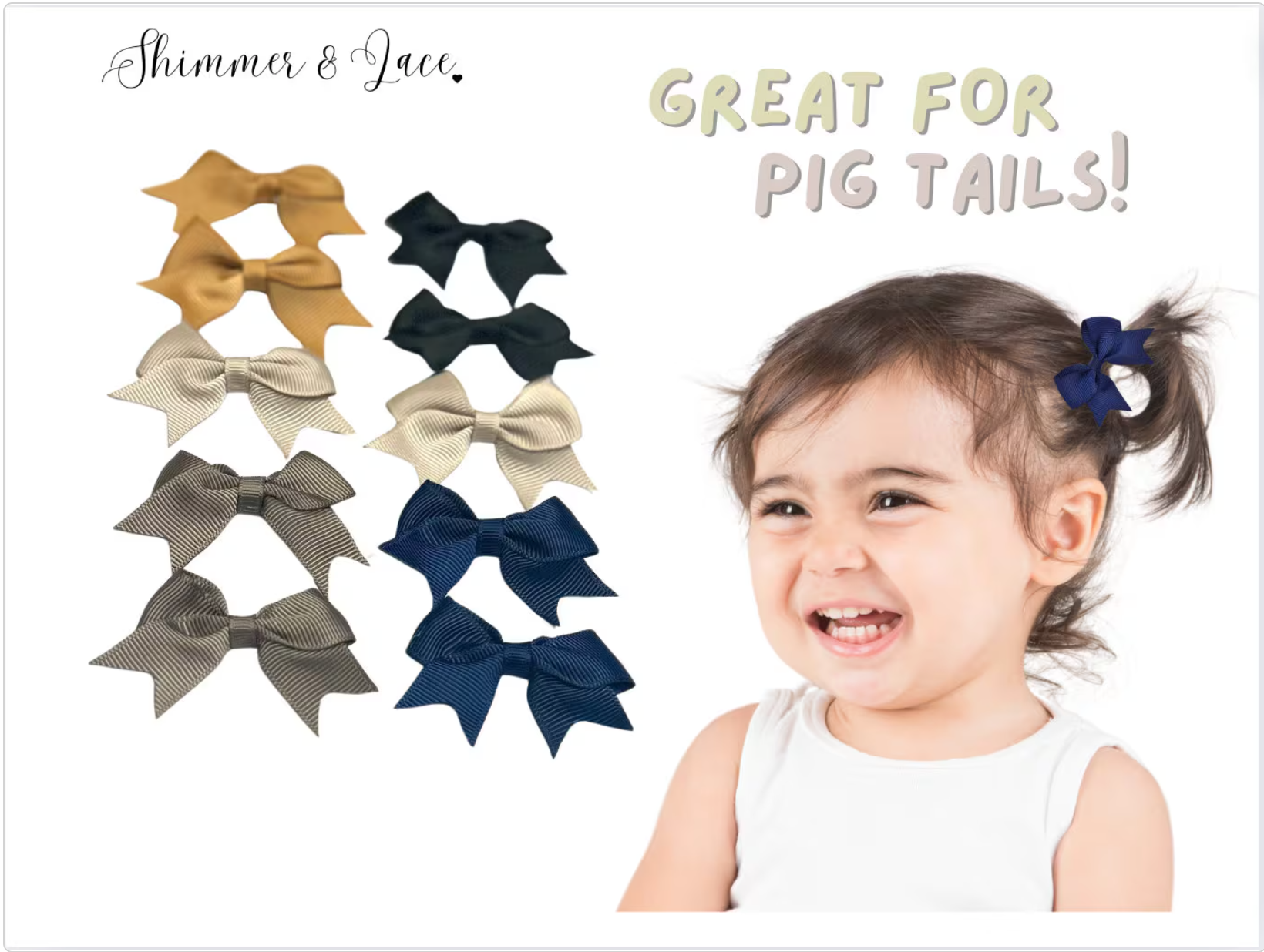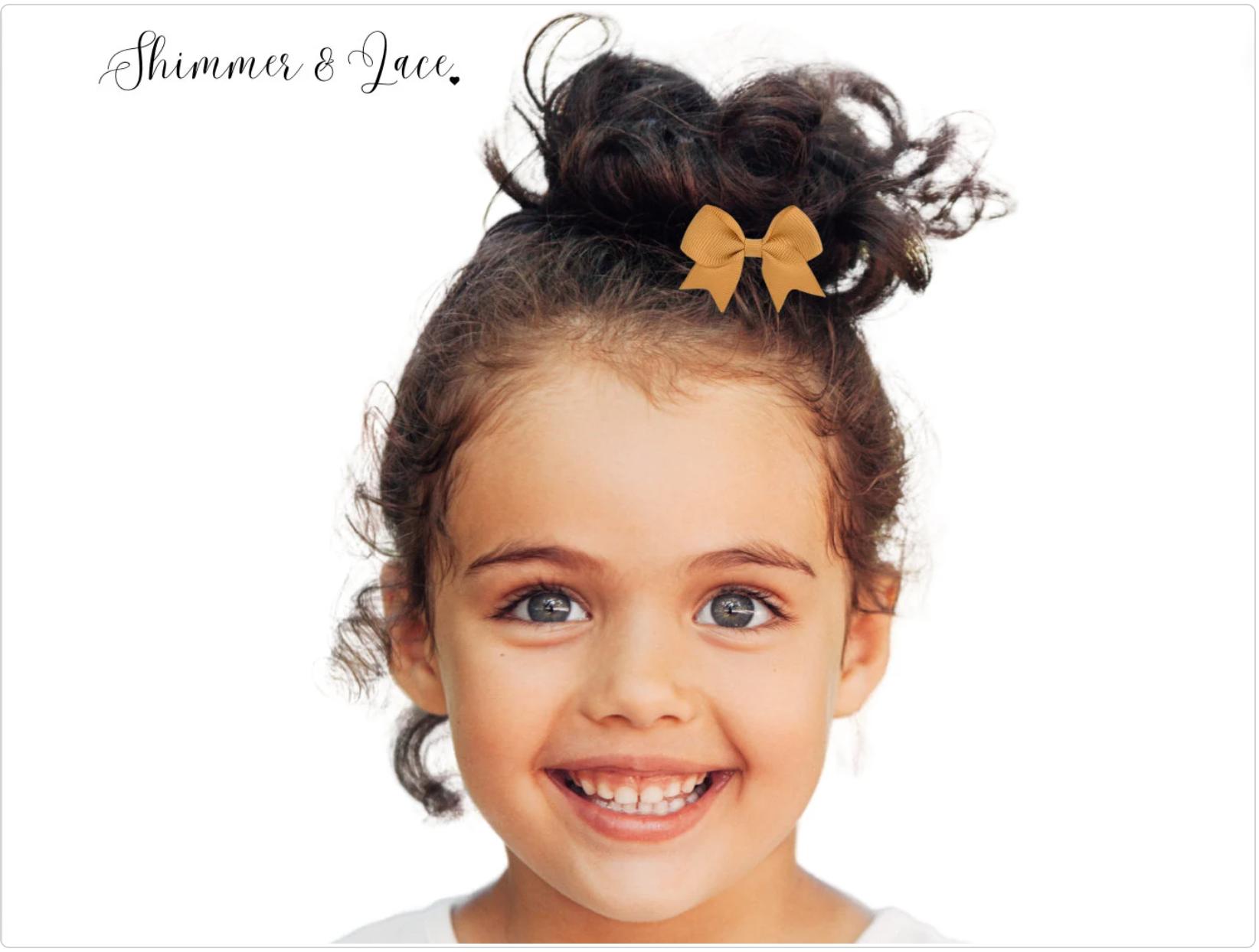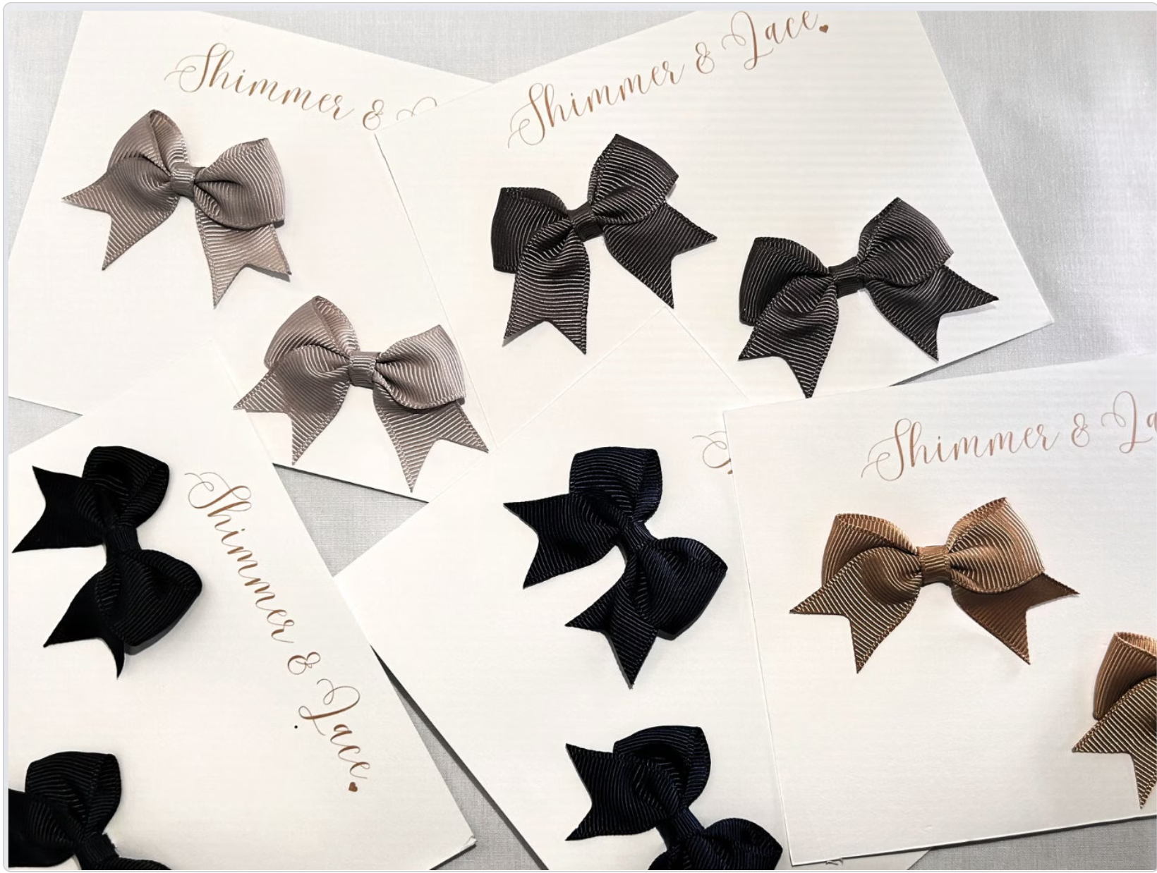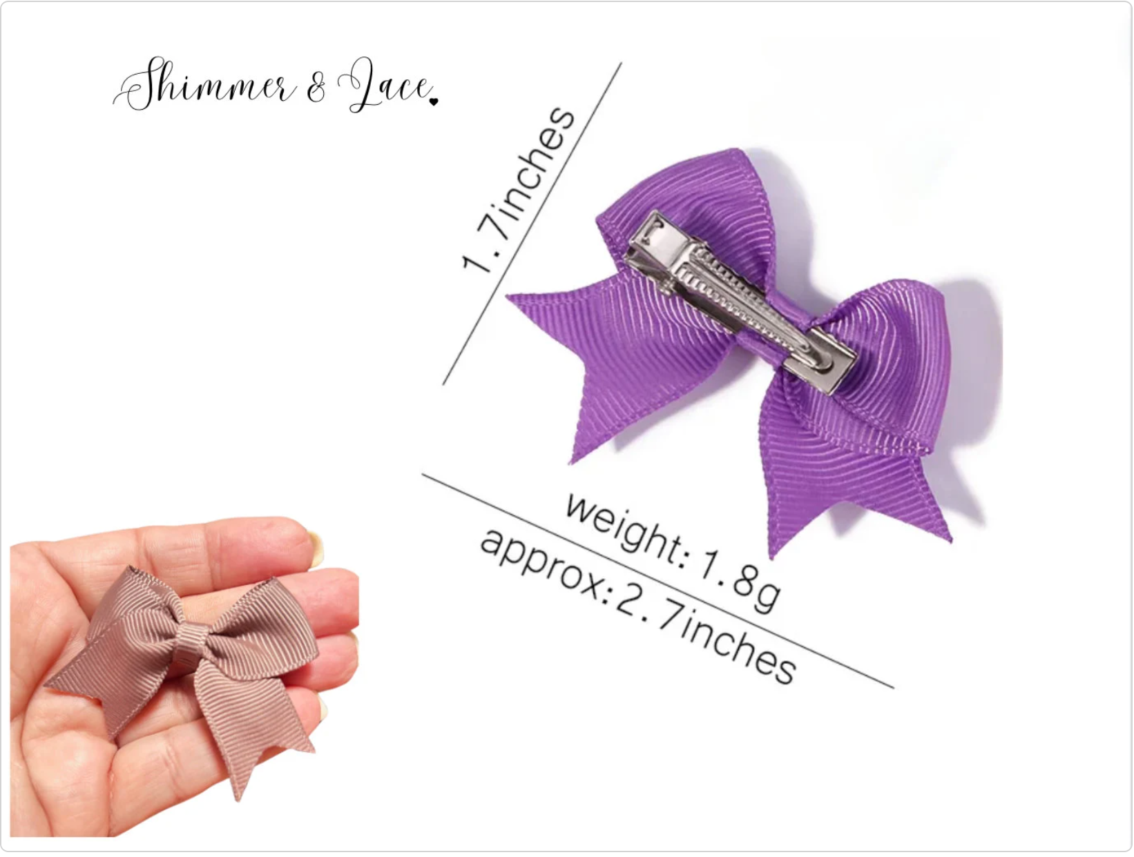 Grab a set today and elevate your child’s hair game with these versatile and chic mini hair bows! High quality grosgrain 1.5" bow. These bows are attached to our non slip alligator ribbon wrapped clip.